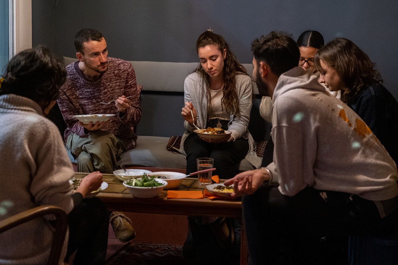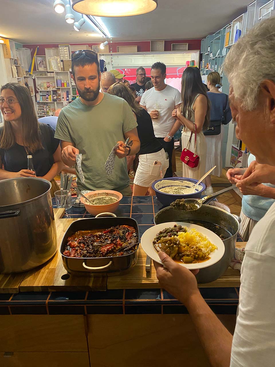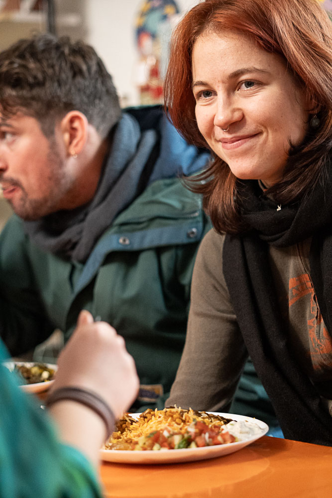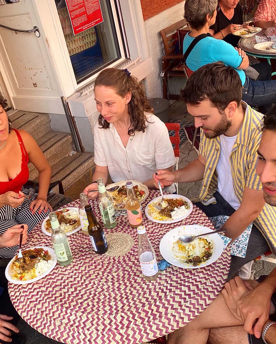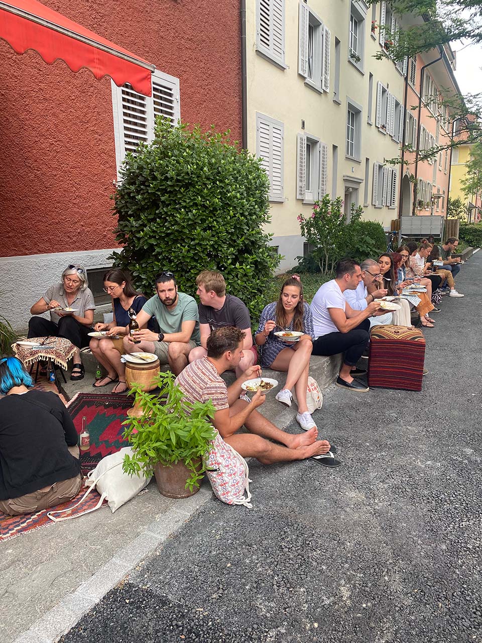 Nach diesem kopf- und herzlastigen Teil, war der Bauch an der Reihe. Ab Sieben Uhr wurden die Bäuche vollgeschlagen begleitet von herzlichem lachen, schwatzen und schmatzen. Es wurden zwei hausgemachte, traditionelle persische Gerichte angeboten. Ghormesäbsi ist ein Kräutergericht mit getrockneten Limetten, roten Bohnen und Lammfleisch. Gheime ist ein Linseneintopf mit Oberschienen und Pilzen. Beide Gerichte wurden bis aufs letzte Reiskorn verspiesen. Der Sonntagabend fand ein sehr harmonisches Ende mit vielen neuen Eindrücken, neuen Erkenntissen und neuen Bekanntschaften.