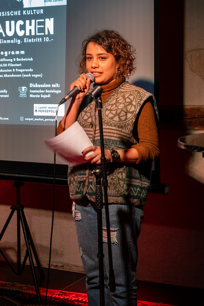 Gestartet hat er mit einer 10 minütigen geschichtlichen und politischen Einbettung für die Zuschauer*innen in die Zeit 1979 im Iran. Vorgetragen hat dies Marzie Sajadi, eine im Iran aufgewachsene Soziologie Absolventin. Dies war sehr hilfreich für das Verständnis des Filmes. Der Film «Radiograph of a family» von Firouzeh Khosrovani lies schon während dem Film verschiedene Emotionen höher schlagen. Nicht nur im Publikum wurde die eine oder andere Träne verdrückt, auch auf der Bühne wurden die Emotionen deutlich spürbar. Emotionen hatten Platz und es resultierte eine konstruktive, spannende Fragerunde mit Marzie Sajadi.